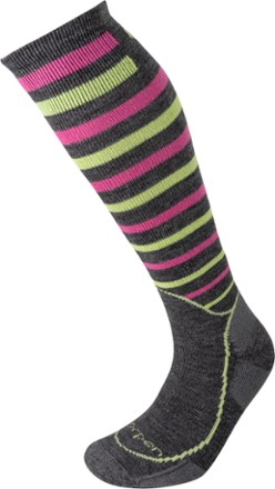 The REI Powderbound sock offers a decent fit with a good shape and adequate compression which are design elements often found lacking in lower-priced ski socks.